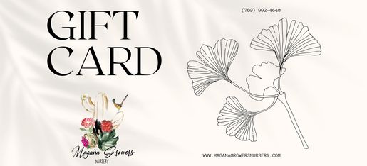 E-Gift Cards are now available at Magaña Growers Nursery, perfect for any plant lover. Physical gift cards coming soon in-store.